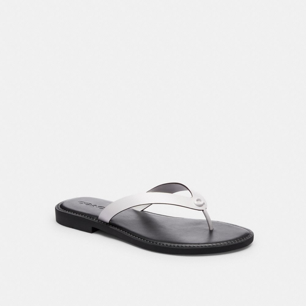 COACH®,Brianna Flip Flop,Rubber,Leather,Faux Leather,Vegan Leather,Flip Flops,Logo,Pull Tab,Casual,White,Angle View