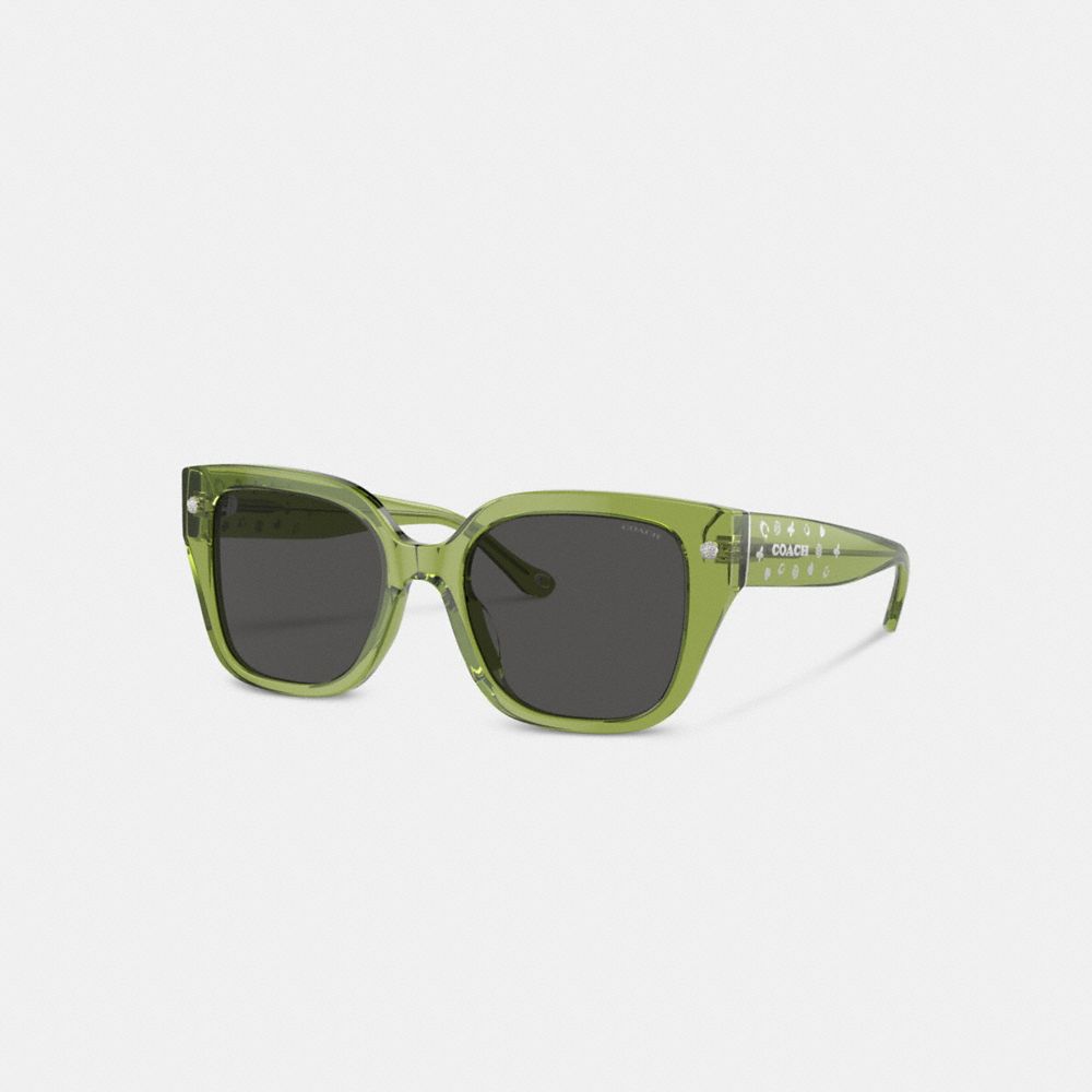 COACH®,Charms Oversized Square Sunglasses,Square,Metal,Logo,Integrated Nose Pads,Casual,Gray,Angle View