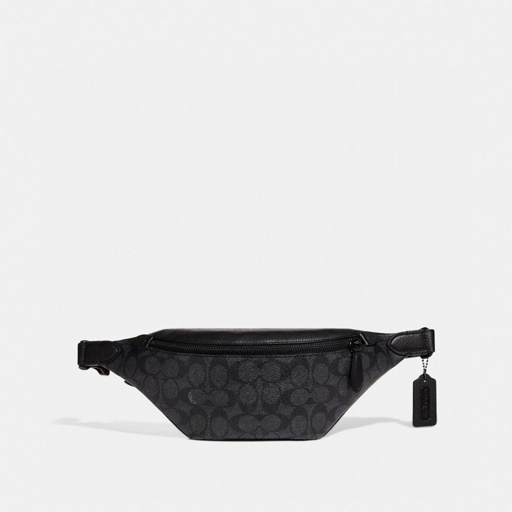 COACH®,Charter Belt Bag 7 In Signature Canvas,Canvas,Leather,Belt Bag,Color Block,Casual,Black,Front View