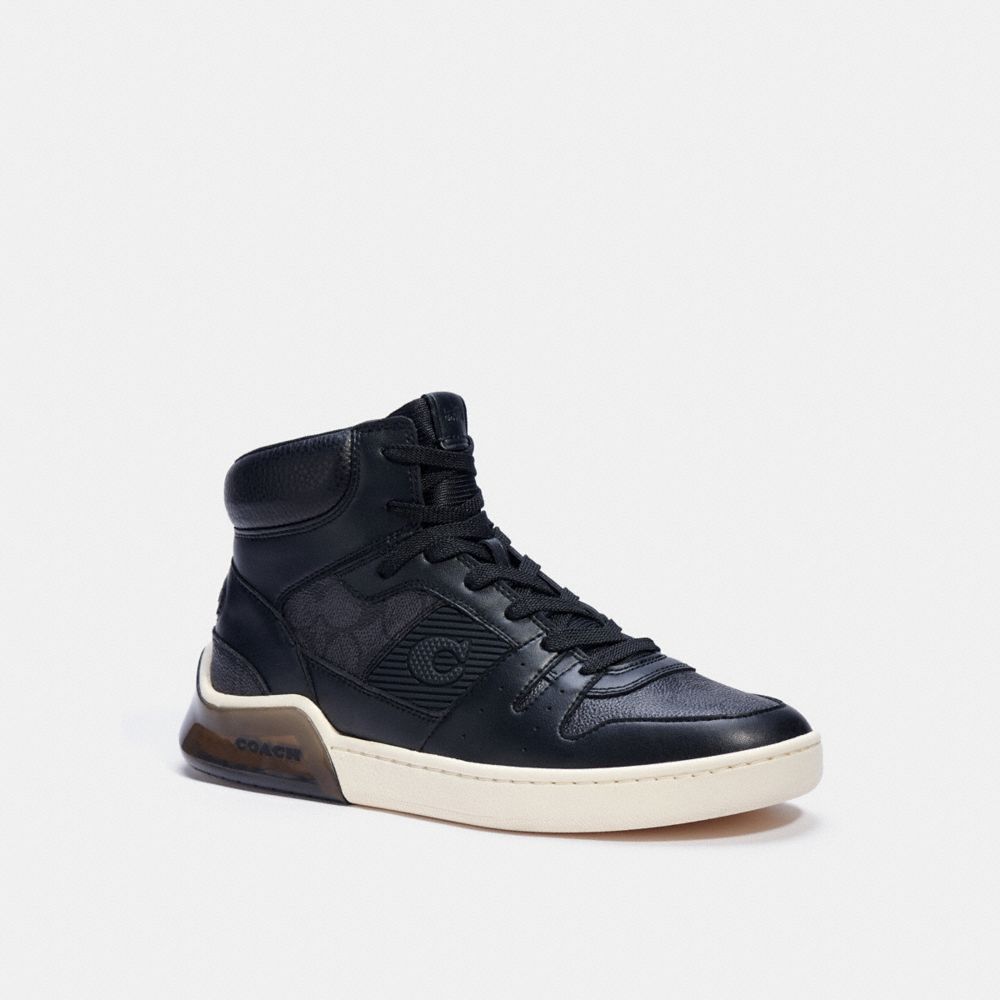 Built for the urban obstacle course, our lightweight High Top sneaker is made with proprietary Coach CitySole technology for maximum comfort and flexibility. Based on traditional high-cut court shoes, this retro style sits at the intersection of fashion and function. Crafted in a mix of leather, rubber and our sturdy Signature canvas, it features a transparent heel with shock-absorbing cushioned pods that provide all-day support. It’s finished with a grooved sole for superior movement and traction. Your feet will thank you.