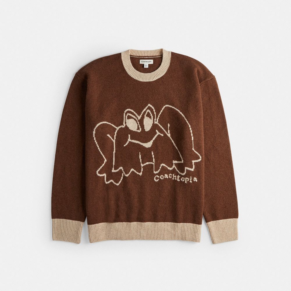 COACH®,Crewneck Sweater With Intarsia Star Frog Graphic,,Front View