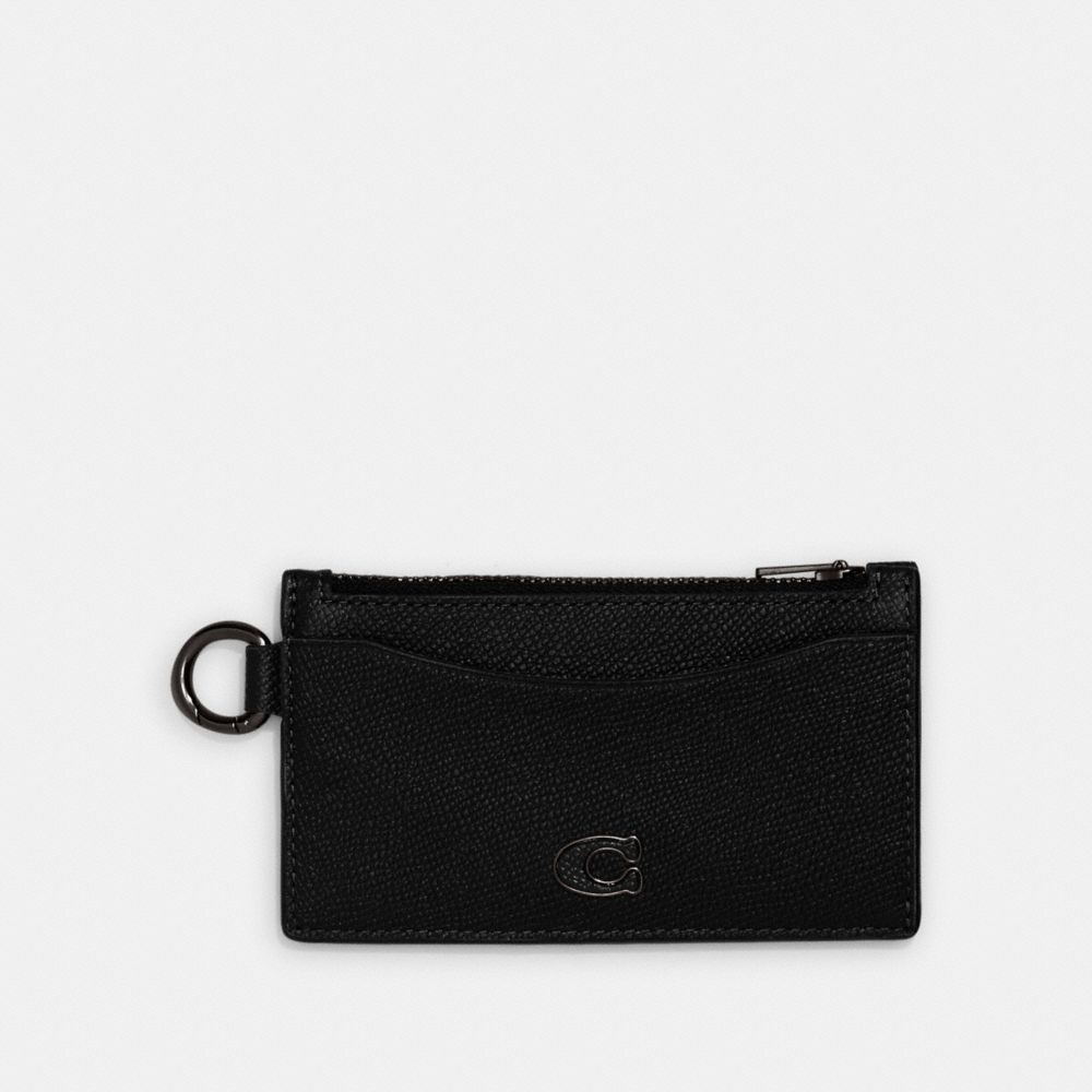 Crafted of scratch-resistant crossgrain leather detailed with our Signature hardware, this case unzips to reveal an expandable pocket. A slim design that slips easily into pockets, it holds five cards and other small essentials. Clip it to a bag or secure to a set of keys with the attached D-ring.