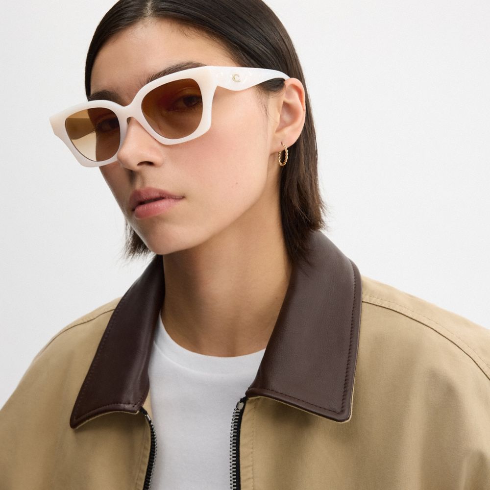 Featuring quilted detailing on the arms in a nod to our handbag designs, these square sunglasses offer full UV protection. The lightweight design is finished with our polished C hardware for a heritage touch.