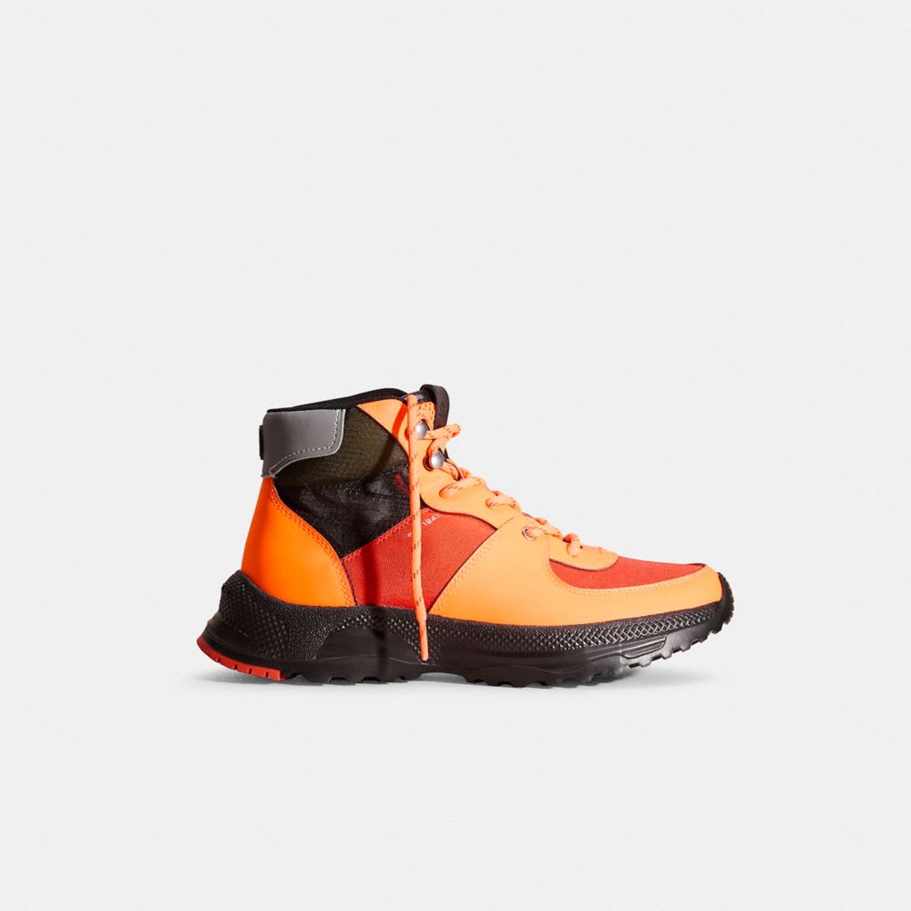 Designed for adventure, this water-resistant hiker boot is set on our exaggerated, technically crafted sneaker sole for ultimate comfort. A sporty and rugged cold weather style, it's crafted in a cool mix of leather and durable CORDURA® fabric with mesh panels and is finished with our Coach retro graphic at the heel.