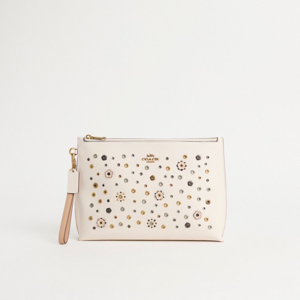A study in everyday style, the Charlie Pouch is a functional design perfect for days on the go. With space for an iPad, this large refined leather case organizes tech and accessories and is detailed with our Tea Rose appliqué and industrial-inspired metal hardware for a touch of rebel attitude. Carry it alone or tuck it into a bag or a backpack to keep smaller items organized.