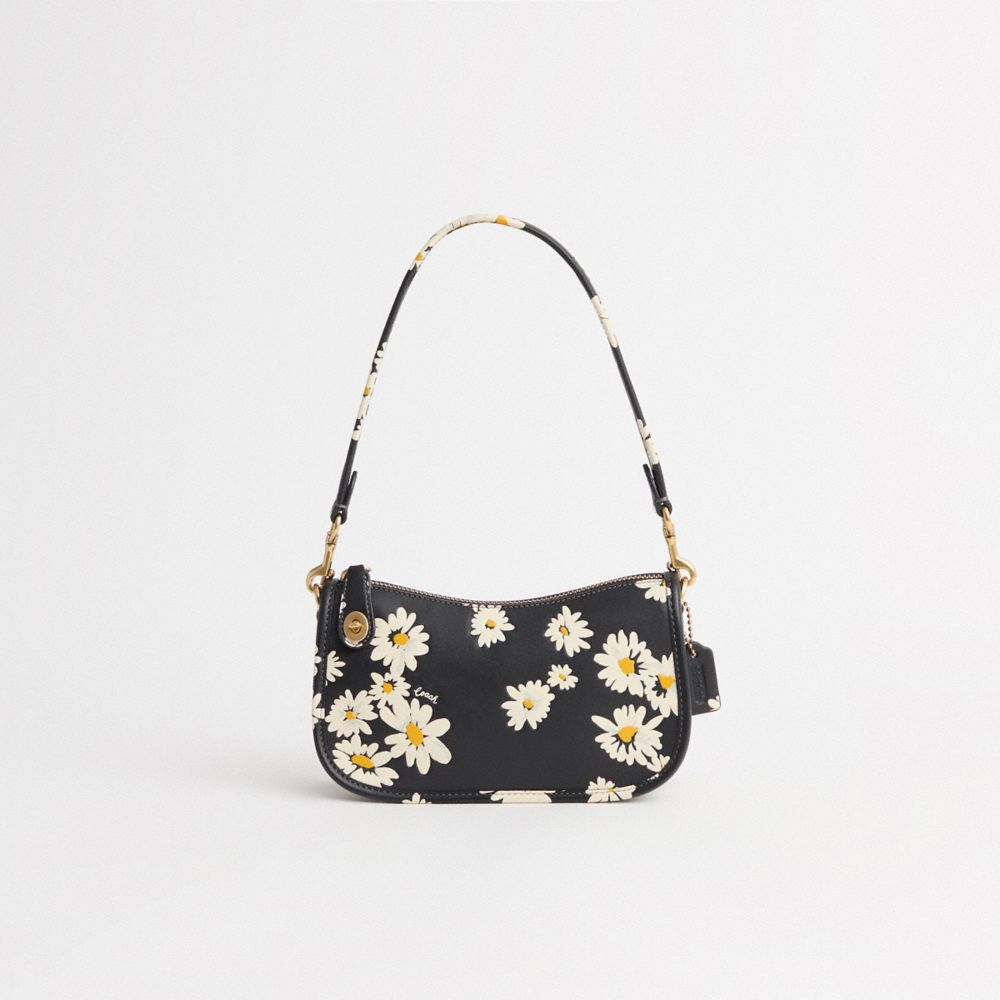 The Swinger 20 Bag is part of The Coach Originals, a collection of archival-inspired bags that celebrates our legacy and authentic New York heritage. This streamlined glovetanned leather style featuring a dramatic daisy motif is based on a 1980s Coach design reimagined for today. Finished with our iconic turnlock closure, the petite Bag sits just beneath the underarm with the short-strap or it can be carried as a clutch.