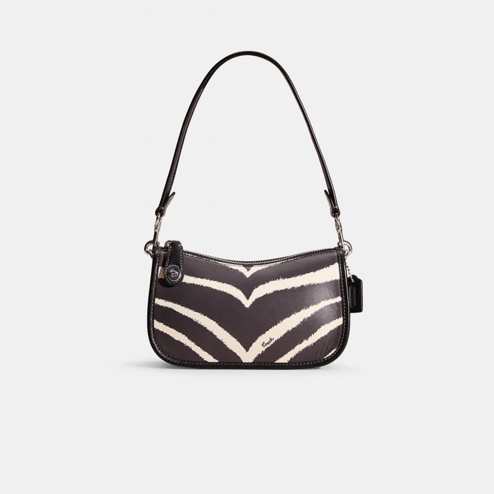 The Swinger 20 Bag is part of The Coach Originals, a collection of archival-inspired bags that celebrates our legacy and authentic New York heritage. This streamlined refined leather style detailed with a graphic zebra print is based on a 1980s Coach design reimagined for today. Featuring our iconic turnlock closure, the petite bag sits just beneath the underarm with the short-strap or it can be carried as a clutch.