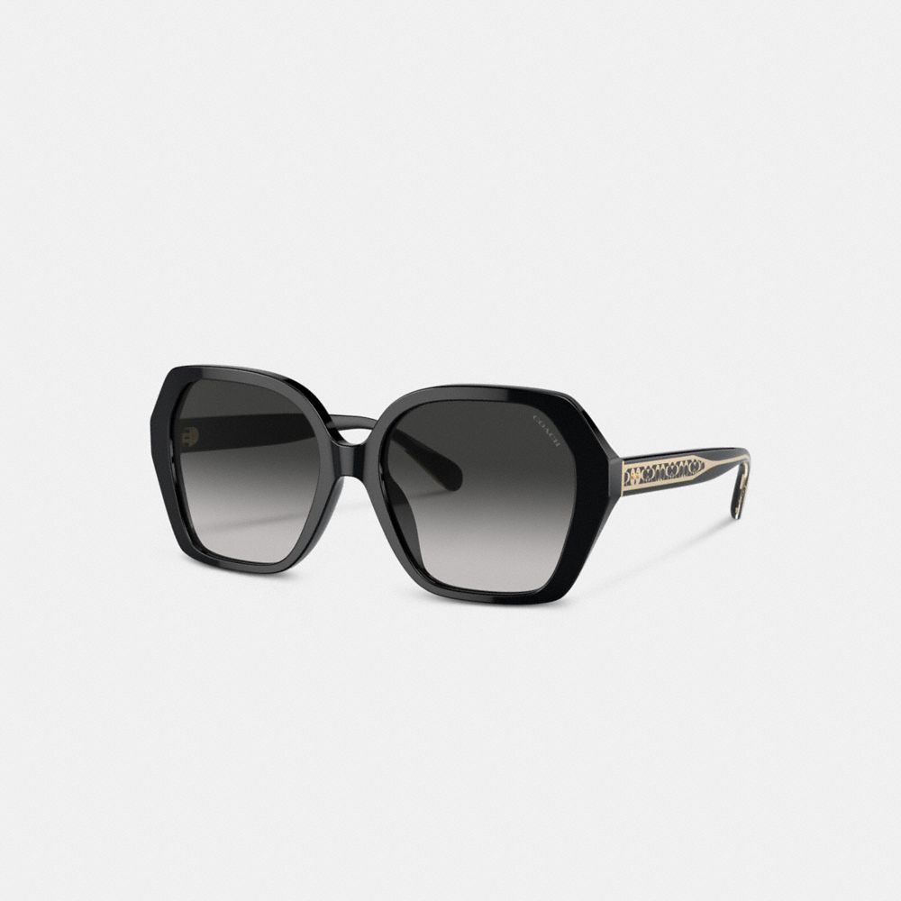 A statement style, these geometric square sunglasses feature an artistic ombré effect and are detailed with our Signature at the temple for a heritage touch. They offer full UV protection and come packaged in a protective Coach case.