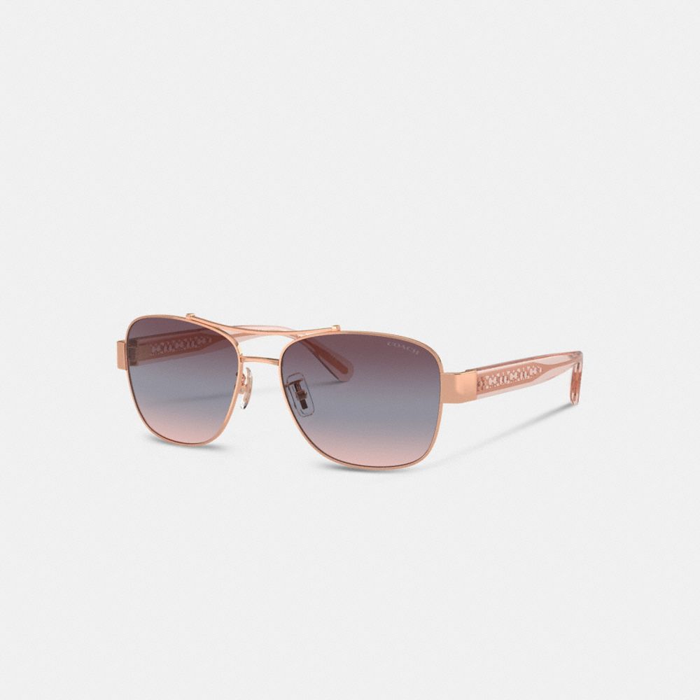 COACH®,Signature Ombré Narrow Pilot Sunglasses,Aviator,Logo,Word Embellishment,Brow Bar,Adjustable Nose Pads,Casual,Multi Color,Angle View