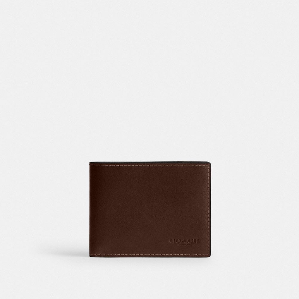 COACH®,Slim Billfold Wallet,Leather,Bi Fold,Logo,Casual,Brown,Front View