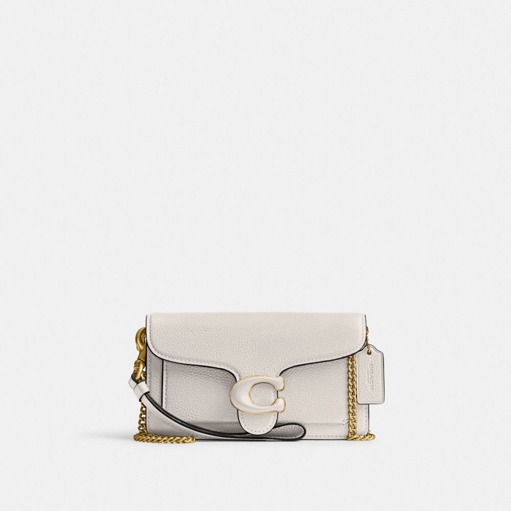 A modern take on an archival 1970s Coach design, our structured Tabby wristlet is crafted of polished pebble leather. Finished with our Signature hardware, it's perfectly sized for cards, cash and a phone with an exterior slip pocket for easy access to essentials. The versatile style can be carried as a wristlet or a clutch and worn crossbody with the elegant chain strap, making it the perfect choice for both dressed up and casual looks.