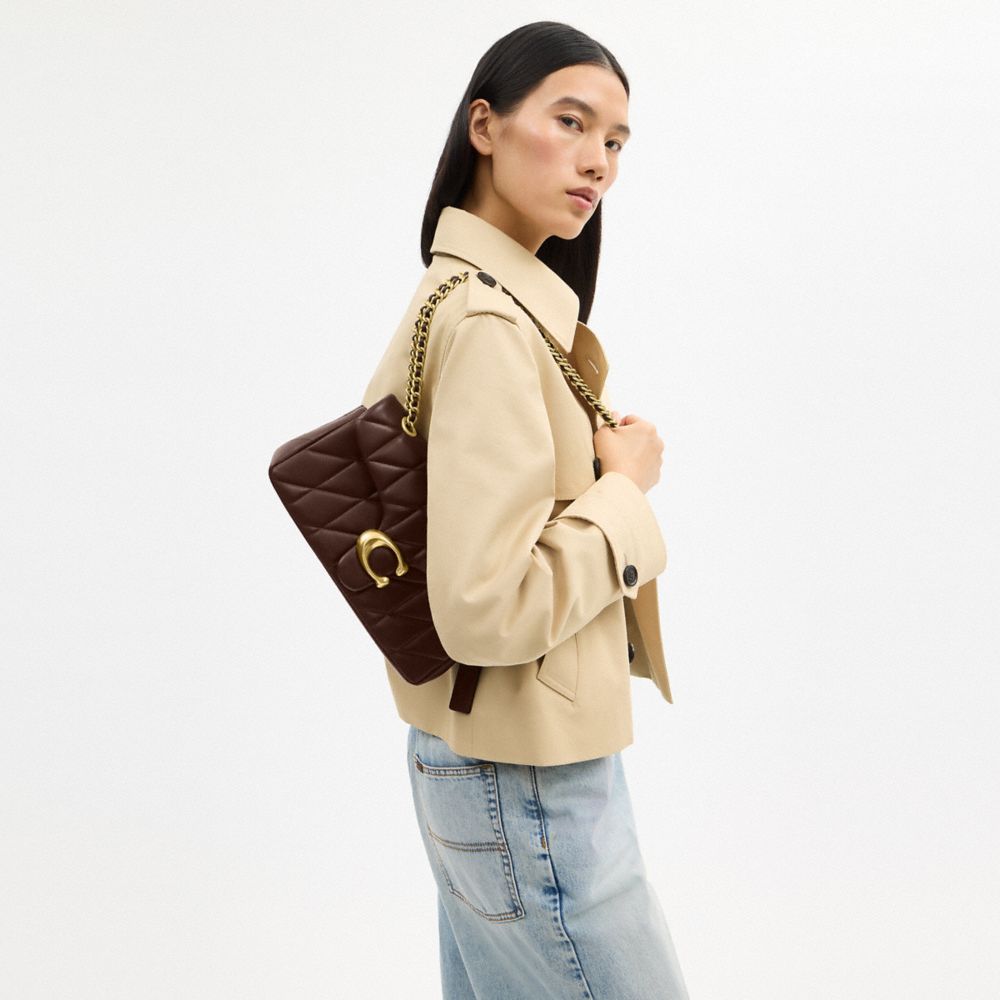 COACH®,Tabby Shoulder Bag 26 With Pillow Quilting,Leather,Shoulder Bag,Logo,Metal,Shoulder Guard,Silver Metal,Day Party,Brown,Angle View