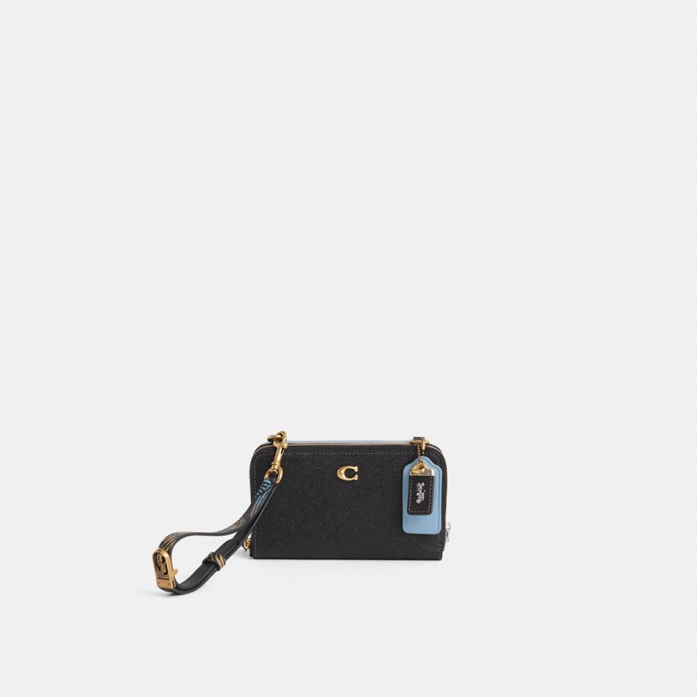 Reimagined as a sophisticated colorblock crossbody design by Rose Oliva with twice the space and twice the organization, this hybrid style has been expertly cleaned, conditioned and restored. Our talented craftspeople Nicole Izquierdo and Yngrid Pichardo Baez sewed two wallets back-to-back, attached a long leather strap with anchors and a printed leather wristlet strap, then added a playful repurposed charm. Crafted of scratch-resistant crossgrain leather and refined leather, each wallet unzips for easy access to its well-organized interior and has ten card slots, a full-length bill compartment and a zip coin pocket keep essentials neatly tucked away.