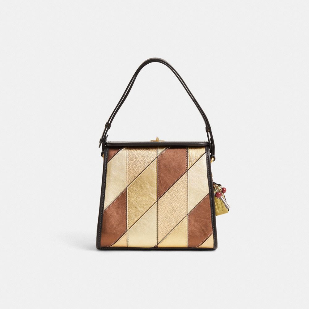 Reimagined by Eunice Chang with a luxe colorblock patchwork of brilliant metallics for a high-shine finish, this sophisticated style has been expertly cleaned, conditioned and restored. Our talented craftspeople Fernando Gutierrez, Nicole Izquierdo and Ella Mulley incorporated Coach remnants to the front, replaced the binding, massaged the gusset, then added a playful repurposed charm. Our Turnlock Shoulder Bag is part of The Coach Originals, a collection of archival-inspired bags that celebrates our legacy and authentic New York heritage. This structured design is based on a Coach silhouette from 1998 and reimagined for today. Crafted of glovetanned leather, it’s finished with an adjustable strap and our iconic turnlock closure.